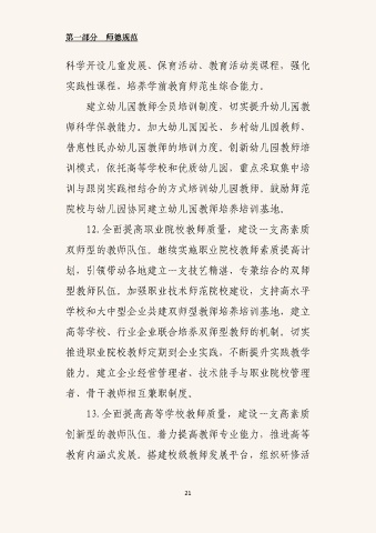 型教师队伍。加强职业技术师范院校建设,支持高水平