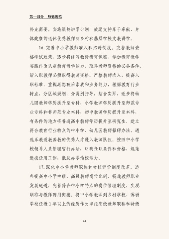 16.完善中小学教师准入和招聘制度。完善教师资