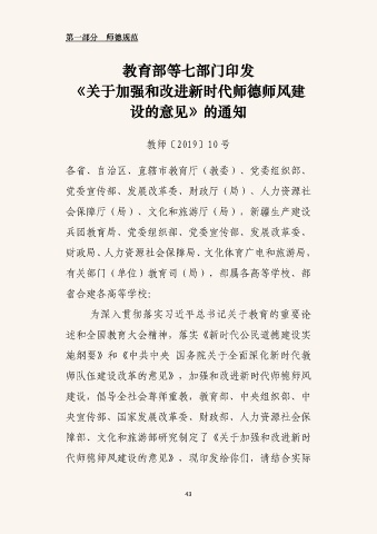 师队伍建设改革的意见》,加强和改进新时代师德师风
