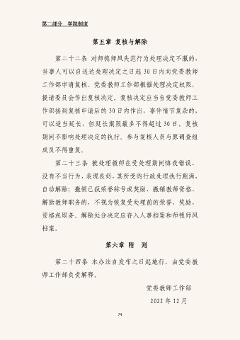 工作部申请复核。党委教师工作部根据处理决定权限,