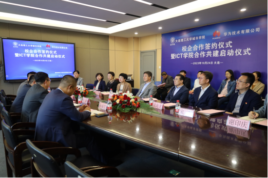 与华为技术有限公司在行政楼309会议室举行座谈会并签署框架合作协议。根据协议,双方将依托各自优势,深化校企合作,共建华为ICTa片