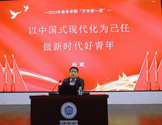 本网讯 3月8日中午,院长杨斌在图书馆报告厅围绕“以中国式现代化为己任,做新时代好青年”主题,为师生党员讲授开学第一课。