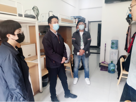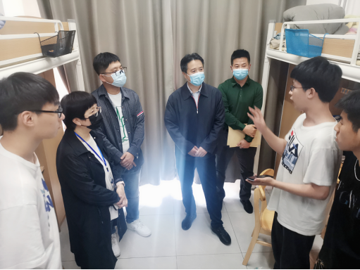 本网讯 5月18日下午,院长杨斌、副院长石华及学生工作部主任刘学奇一行,走访学生宿舍,实地调研封校后学生的思想动态、线上学习、宿舍生活等方面情况,征求学生对a片