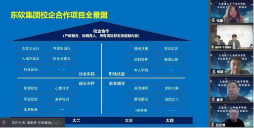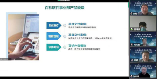书记、院长访企拓岗促就业专项行动实施方案》部署,克服疫情封校影响, 4月29日,杨斌院长在校内主持召开3场视频座谈会,分别与东软集团(大连)有限公司、大连益盛达智能科技有限公司、青岛百杉软件科技有限公司等3家企业进行线上交流。就业工作部、计算机工程a片