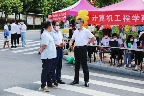 9月7日清晨6点,迎新相关部门负责人、工作人员、学生志愿者们在各自岗位上准备就绪,以良好的精神面貌与亲切热忱的服务态度迎接新生的到来。院领导郭玉铸、杨斌、宋辉、邹亚新、沈海龙、石华及相关部门负责人分别来到迎新现场,了解迎新报到情况,查看疫情防控措施,做实、做细新生核酸检测、“三码一测温”、报到注册、信息比对、寝室入住、隔离送餐等工作。