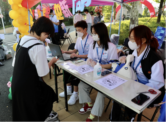 采取数字化报到方式。新生只要手持“两码一报告”即可进入校园,进入校园后通过扫辽事通码即可绑定核酸检测结果。在院系新生报到处,a片