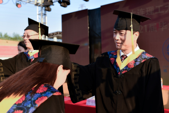 优秀毕业生”称号。主席台领导为毕业生代表拨动流苏、授予学位,同时为获奖毕业生代表颁奖。