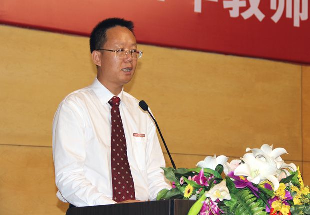 郭书记说,今年的教师节是我国第三十个教师节,此时此刻,我们倍感教师职业的崇高、光荣和神圣。教育是国家发展的基石,百年大计,教育为本,教育大计,教师为本,教师是名副其实的奠基者。从1985年设立教师节至今的30年间,党和国家始终重视加强教师队伍建设,始终关心教师的健康成长,始终发挥教师在我国教育事业发展中的作用。2010年颁布实施的教育规划纲要,把加强教师队伍建设作为教育事业发展最重要的基础性工作,提出“建设高素质专业化教师队伍”。党的十八大报告更是对广大教师提出殷切希望和根本要求。习近平总书记在2013年教师节致全国广大教师的慰问信中指出,教师是立教之本、兴教之源,承担着让每个孩子健康成长、办好人民满意教育的重任。因此,打造一支师德高尚、业务精湛、结构合理、充满活力的高素质专业化教师队伍,是任何一所大学的立校之本,是最基础性工作,教师队伍的建设成效,是一所大学能否充满活力和进取,并不断坚实前行和进步提高的绝对推动力量。