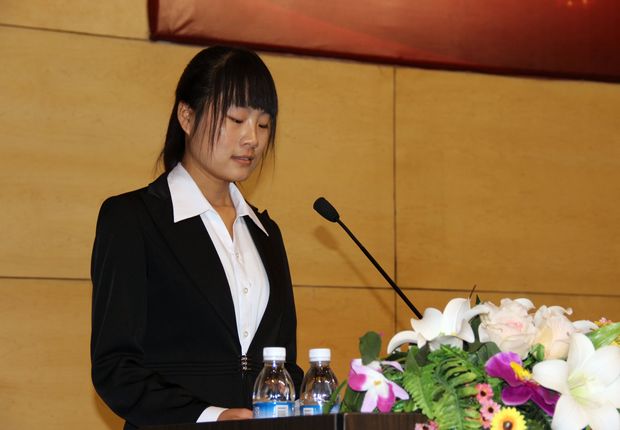 新生陈翠茹分别代表获奖同学和全体2013级新生在会上发言。