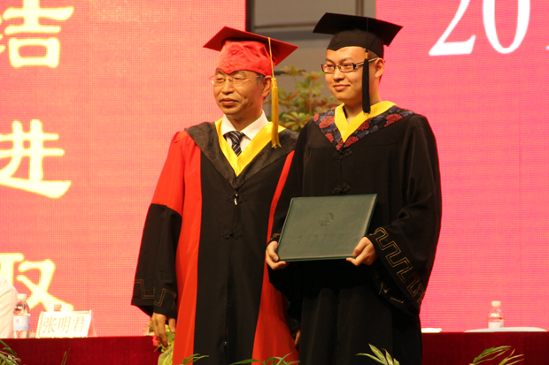在全场热烈的掌声中,匡国柱院长向荣获学士学位的毕业生代表颁发了学位证书,并做了重要讲话。