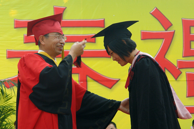 学士学位的52名毕业生代表颁发学位证书,毕业典礼的气氛达到了高潮。