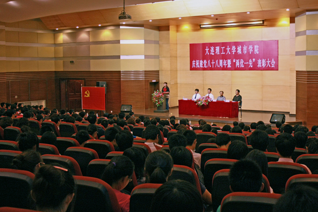 在图书馆报告厅隆重举行庆祝建党88周年暨“两优一先”表彰大会。a片