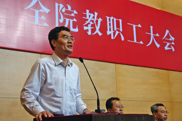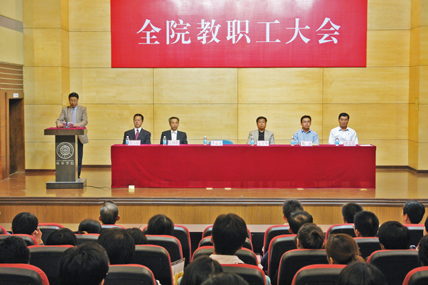 在图书馆学术报告厅召开全院教职工大会,宣布a片