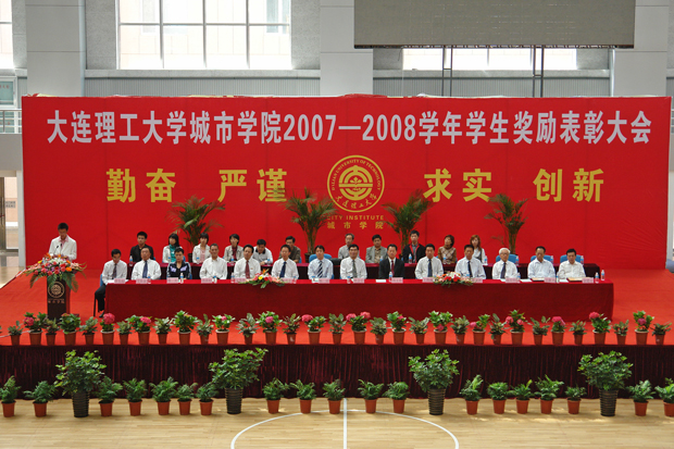 体育馆充满了喜庆欢乐的节日气氛,全院1700多名师生聚集在这里,隆重举行2007——2008学年学生奖励表彰大会。院长唐志宏、院党委书记郭玉铸、副院长杨斌、王铁成,院长助理沈海龙、李宪起、王玉林、王善坤等a片