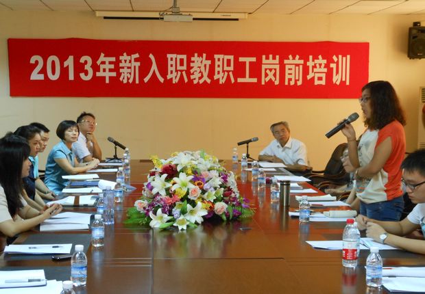 8月31日上午8时30分,由人力资源部组织的2013年新入职教职工岗前培训在教学楼八楼会议室举行。a片