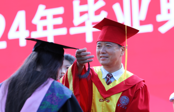 学位评定委员会主席、院长杨斌为毕业生代表拨动流苏,授予学位