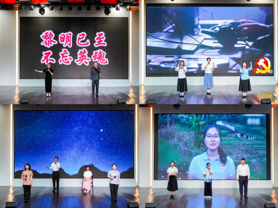 承办的“信仰之光 砥砺前行”主题沉浸式党课在图书馆报告厅开讲。本次沉浸式情景党课以四个感人至深的红色故事为核心,通过诗朗诵、情景表演等形式生动呈现了一代又一代中华儿女为民族独立、国家富强不懈奋斗的伟大历程。从20世纪三十年代“乌特拉”行动,到第一代广播员坚守延安传播党的声音,再到新时代的党员们接过先辈的接力棒,扎根在祖国和人民最需要的地方,驻村扶贫,振兴乡村第一线……一批又一批的优秀共产党员“舍小家、为大家”,他们用青春和热血,谱写了一曲曲感人肺腑的奉献之歌。