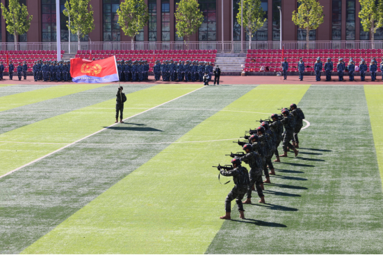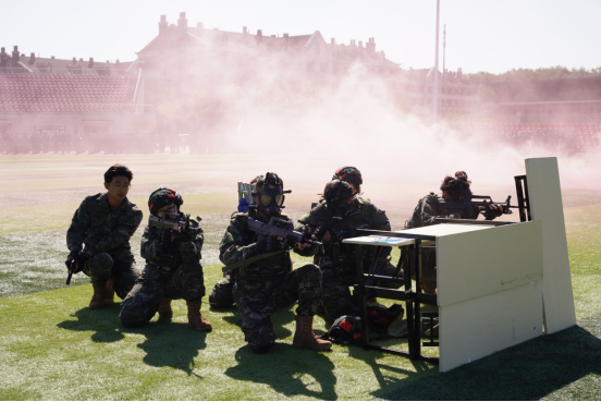一支由40名受训学生组成的方队上演了精彩的战术表演,他们身着迷彩,手持装备,用精彩的表演,向与会领导、老师和教官们展示了丰硕的训练成果。