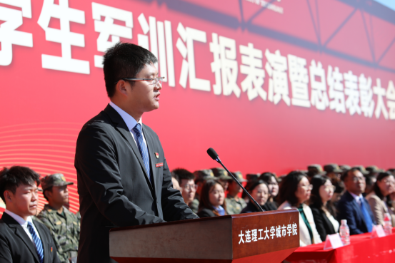 学生工作部主任、武装部副部长刘学奇宣读2024级学生军训表彰决定。对军训期间涌现出的34个先进集体、15个优秀寝室、20名优秀教官和144名先进个人予以表彰。