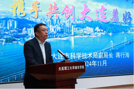 蒋行海作大连市政策环境主旨宣讲。他从大连市的未来前景、事业平台、人才政策和服务环境等多个方面进行了宣讲。
