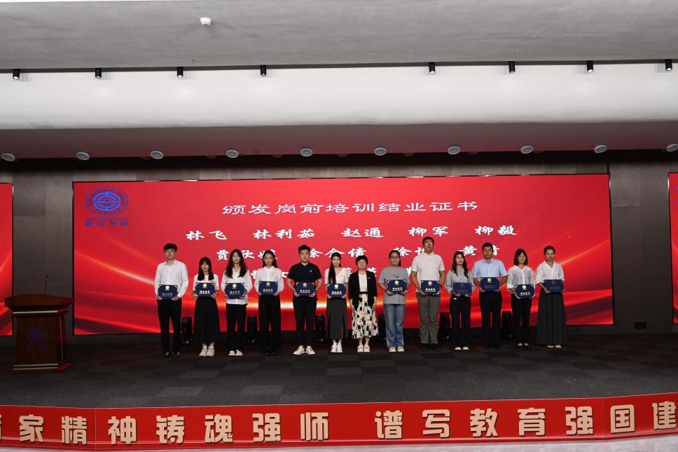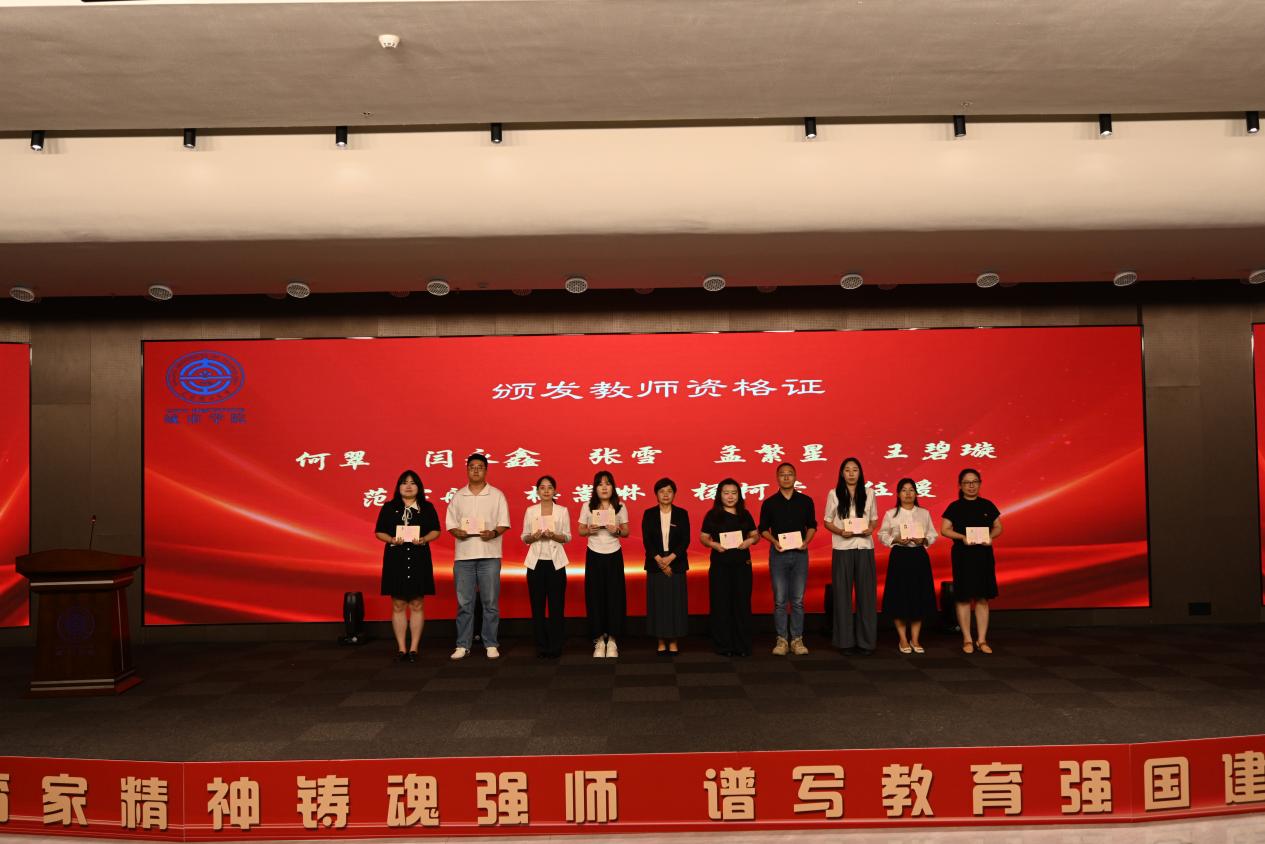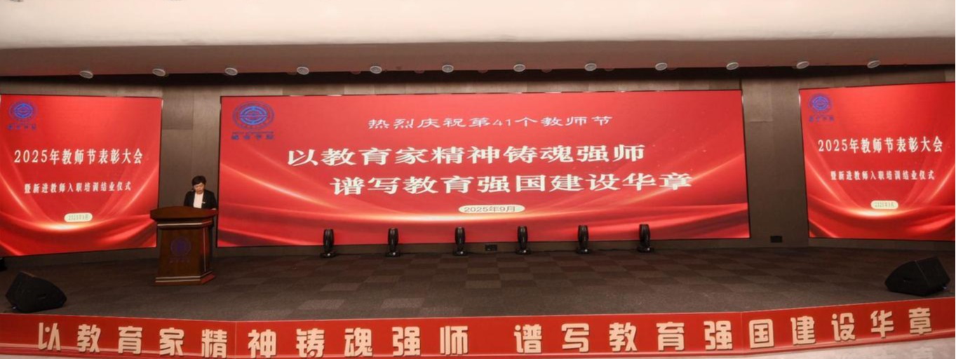 大会在庄严的国歌声中拉开帷幕,随后进行2025年新进教师入职培训结业仪式。