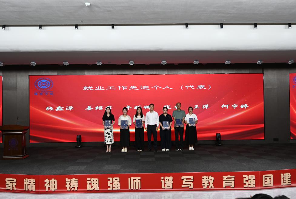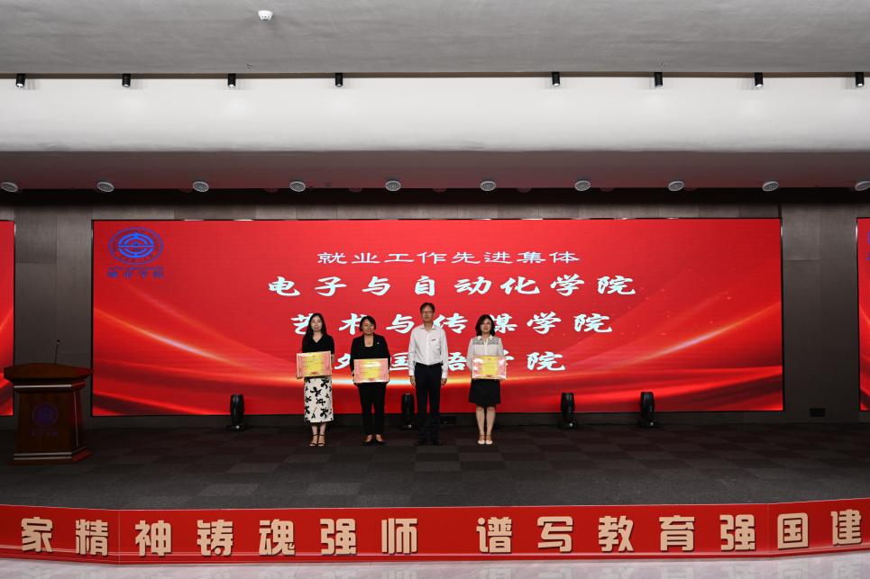 在荣誉表彰环节,长期致力于教学科研、管理服务、创新实践培养、学生就业服务等方面作出贡献的先进集体代表和教职工代表先后登台接受表彰。