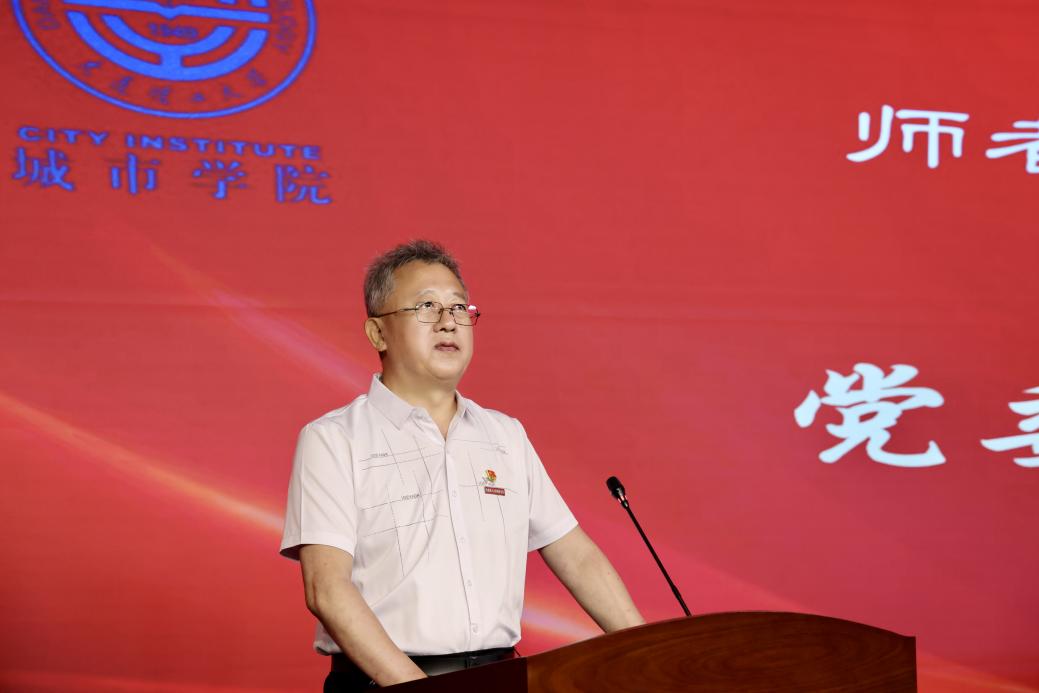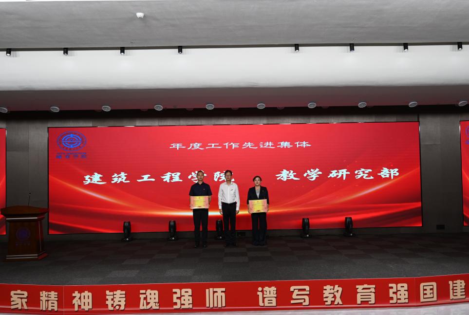郭玉铸对全院教师提出三点希望,第一,全体教师要坚定“为党育人、为国育才”的理想信念。高校作为应用型人才培养的重要阵地,肩负着培养适应区域产业发展、具备实践能力的人才培养使命;第二,要锤炼“勤学笃实、知行合一”的专业素养,既要深耕本专业领域,成为“双师型”教师队伍的“领头雁”,也要关注跨学科融合,在“产教融合”领域寻找创新突破口;第三,要涵养“淡泊名利、甘于奉献”的师德师风,希望全体教师把“教书育人”作为毕生追求,成为学生成长路上的“引路人”。