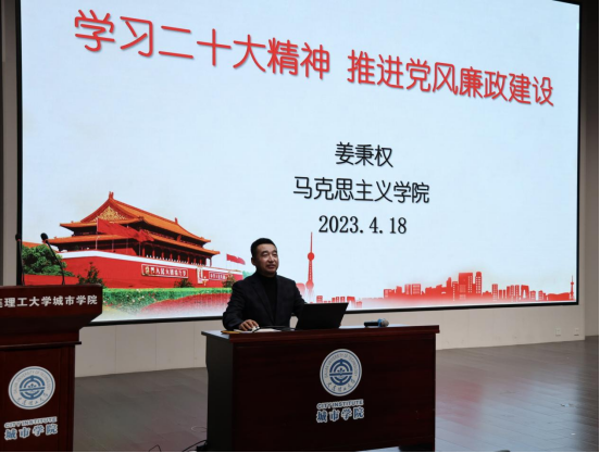 姜秉权老师做题为《学习党的二十大精神,推进党风廉政建设》专题辅导报告、观看警示教育专题片,对全院教职工党员进行廉洁教育及警示教育。
