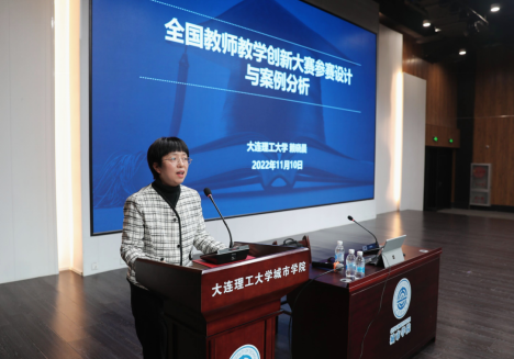 赖晓晨教授从创新大赛的背景、教学创新成果报告、课堂教学实录视频、教学设计创新汇报等具体问题进行了详细的讲授,既有理论高度,又有风趣的案例解析,让参加培训的教师获益良多。