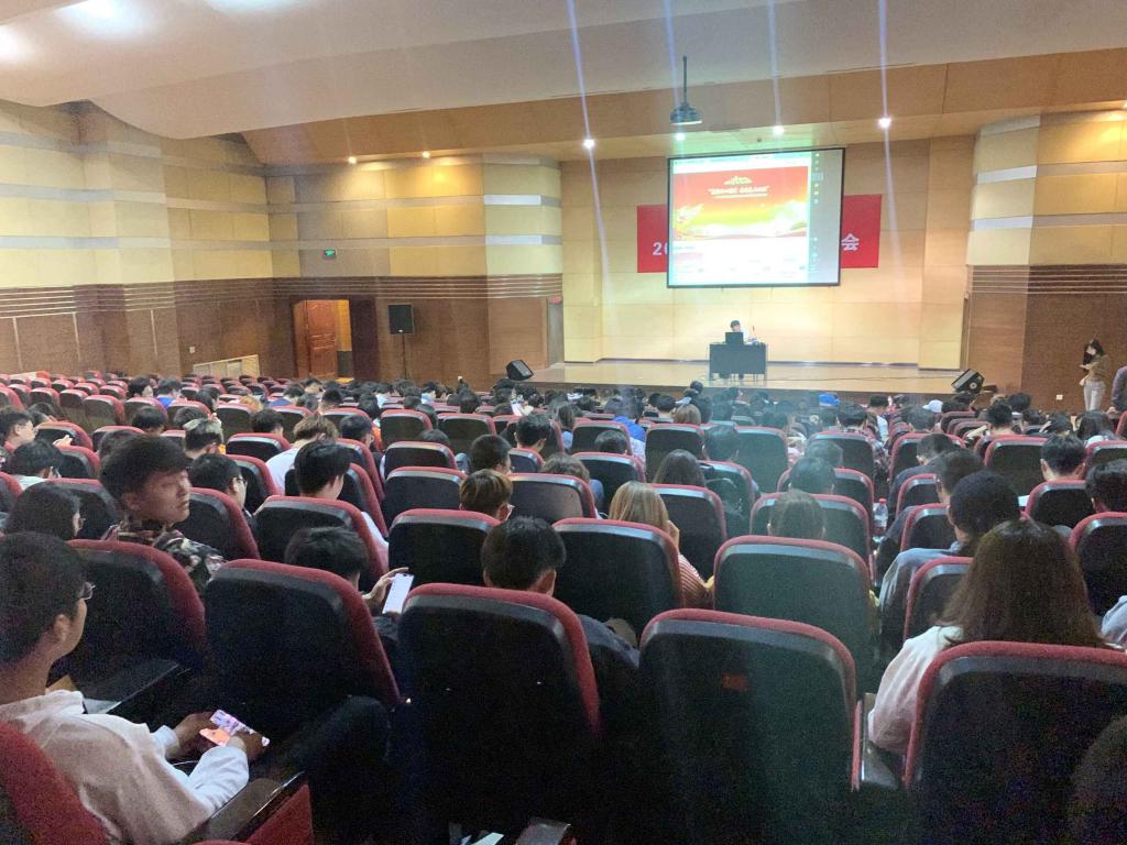 于5月14日14时组织思政课教师、辅导教师、学生代表200余人在图书馆报告厅集中收看网络直播。