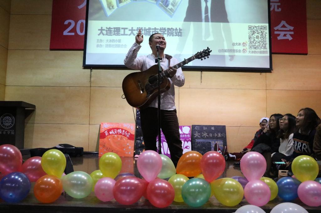 团委社团联合会承办的“大冰的小屋·百城百校音乐会”在图书馆报告厅举行,著名歌手王继阳、谣牙子与我院师生互动交流,以歌曲的形式讲述民谣的故事。