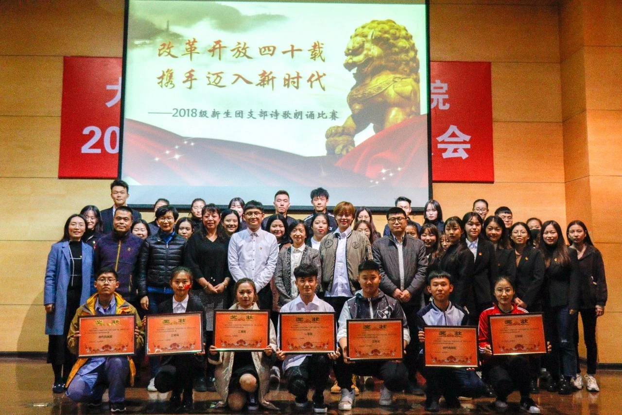 团委承办的“改革开放四十载,携手迈入新时代”诗朗诵比赛决赛于11月8日在图书馆报告厅举行,数字媒体艺术1802团支部获得一等奖;自动化1802团支部、信息管理与信息系统1801团支部获得二等奖;日语1802团支部、软件工程1805团支部、广播电视学1801团支部获得三等奖;通信工程1801团支部、工程管理1801团支部、电子信息工程1802团支部获得时代风尚奖。