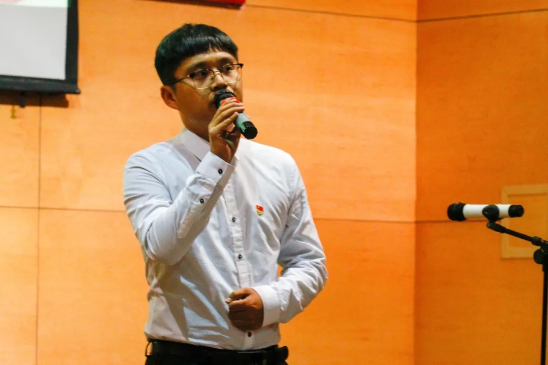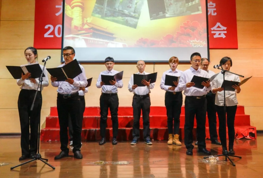 机关第一党支部的教师们以其真挚的诗歌朗诵《我的祖国》,向在场的同学们讲述老师心中改革开放四十年的激动和自豪。
