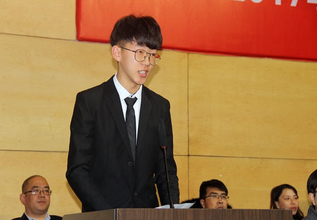 获奖学生代表董静雨、新生代表邢博分别在会上发言。