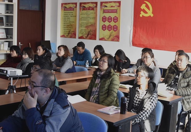 党委在2705教室召开党支部书记培训会,学习习近平总书记在全国高校思想政治工作会议上的重要讲话精神,党委副书记兼副院长杨斌主讲,全院近20名党支部书记参加了培训。