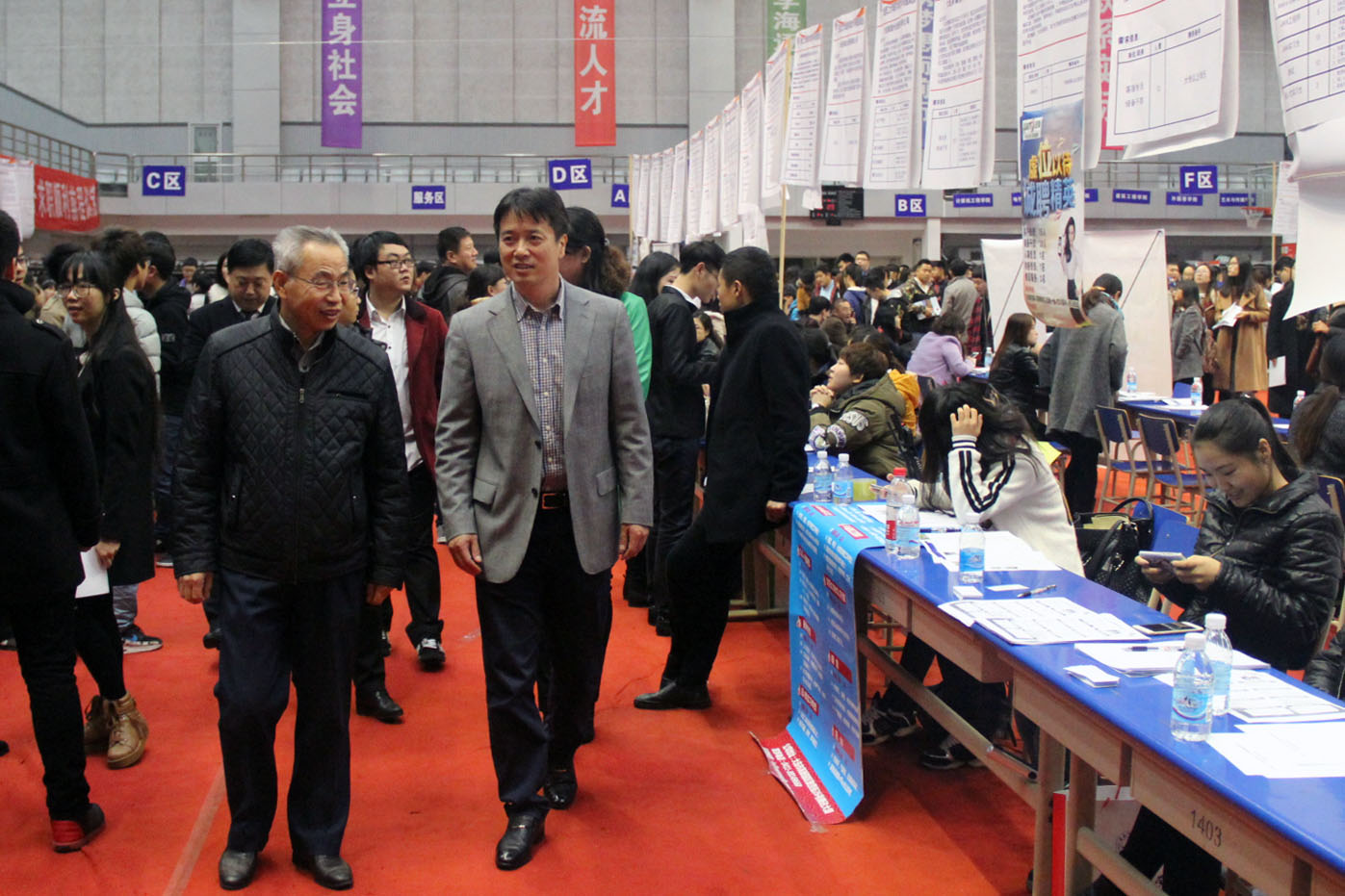 院长匡国柱、副院长杨斌等院领导视察了双选会现场,并与用人单位和参会师生进行了交流。