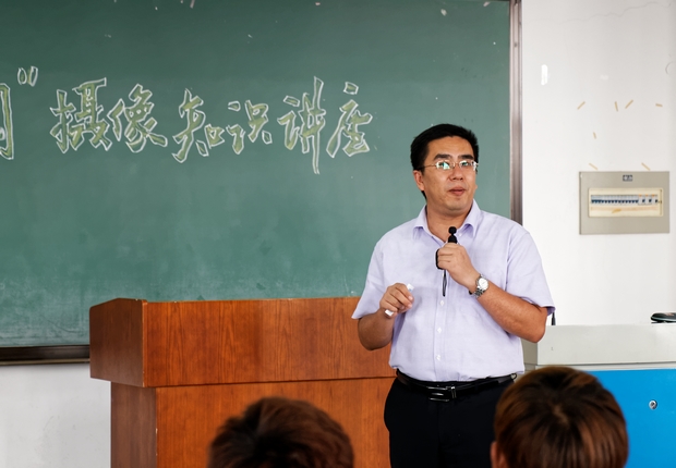 讲座开始,吴老师首先问同学们在拍摄视频时对单反相机和数字摄影机的使用偏好,以此引出今天讲座的主题。他强调,同学们在摄像时更为习惯使用单反相机,因其具有价格适宜、景深感好等特点,但其在拍摄时间及硬件上是存在局限性的,而专业的摄像机无论在芯片的处理及散热效果,还是在功能的设置方面都具有更为强大的优势。