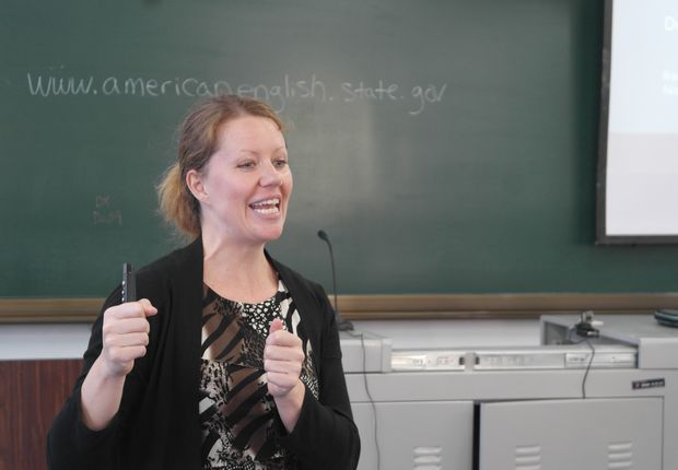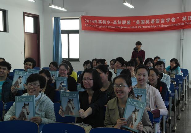 5月12日下午,我院在教学楼2601教室举办2014年第二期英特尔——高校联盟“美国英语语言学者职校英语教师培训”项目。美国驻沈阳领事馆代表、Intel公司代表、以及来自大连大学、大连职业技术a片