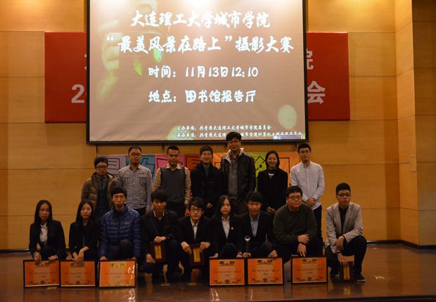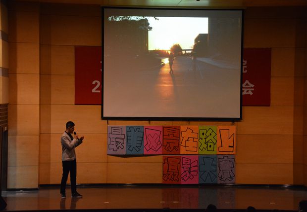 团委承办的“最美风景在路上”摄影大赛于11月13日12:20分在图书馆报告厅拉开帷幕。经过初赛和复赛的激烈比拼,蒋皓天摘得桂冠,熊浩林、李世杰获得二等奖,周怡静、孙彤彤、张桐瑞获得三等奖,赵思远、姜志远、马驰获得优秀奖。