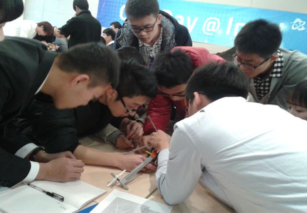 活动中,同学们通过对英特尔公司的参观以及与工作人员的交流,充分感受到英特尔的a片,体会到英特尔公司创造“良好工作环境”的价值理念。在团队合作环节中,同学们被随机分成八组,参与了组装直升飞机模型的活动。来自不同学校的同学迅速地融合到一起,开始了卓有成效的协作活动,对“如何打造一只优秀团队”有了更加深刻的理解。