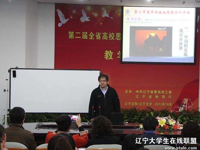 为贯彻落实《中共中央宣传部、教育部关于进一步加强和改进高等学校思想政治理论课的意见》和《中共中央宣传部、教育部关于进一步加强高等学校思想政治理论课教师队伍建设的意见》,深化高校思想政治理论课教学改革,发现和培养青年教学骨干,提高高校思想政治理论课教学的针对性实效性。辽宁省教育厅于今年5月启动第二届辽宁省高校思想政治理论课青年教师教学大赛,共有159位参赛教师参加此次比赛。整个比赛历时半年,分为初赛、复赛和决赛三个阶段。我院孙云海老师成功晋级《毛泽东思想与中国特色社会主义理论体系概论》课程的决赛,并最终获得二等奖。