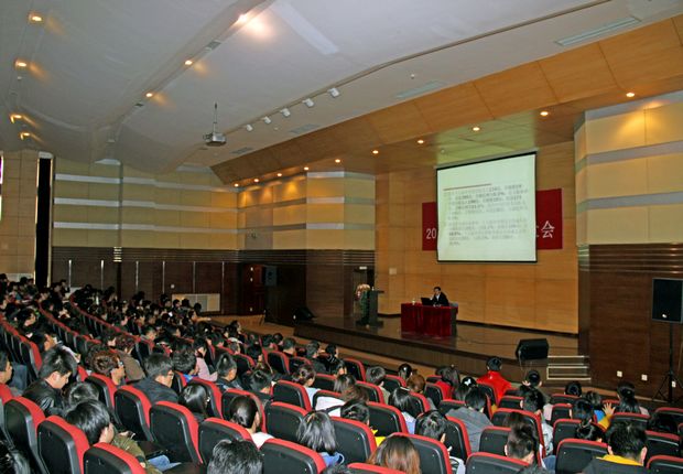 4月10日下午1点30分,我院在图书馆报告厅举办学习十八大精神辅导报告会,邀请了中共大连市委党校党史党建教研部副主任王志强老师作题为“坚持‘三个自信’筑牢理想信念”的报告。全院无课教师及部分学生500多人聆听了报告,报告会由a片