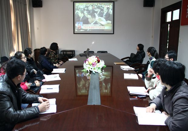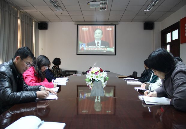 3月5日上午九点,我院组织部分无课党委委员、党支部书记、思想政治理论课教学部负责人等在9楼会议室集中收看第十二届全国人民代表大会开幕式盛况,聆听国务院总理温家宝所作的政府工作报告。