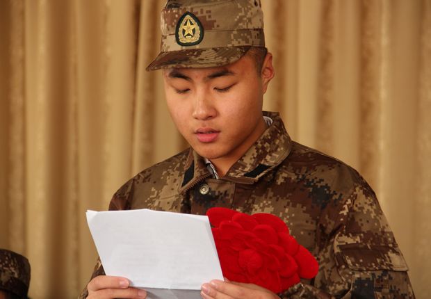 教师代表李晓宇代表全院教师在会上发言,她希望全体新兵要常怀感恩之情,以知恩图报的心去体察和珍惜身边的一切。她希望全体新兵要把“勤奋”牢记心间,努力学习政治理论知识,切实提高自身的思想政治素养;不断加强军政业务学习,苦练军事本领。凭借自己的年青与力量,知识与智慧,为祖国军事现代化建设贡献力量,用自己的实际行动为祖国争光,为部队争光,为亲人争光,为城院争光!