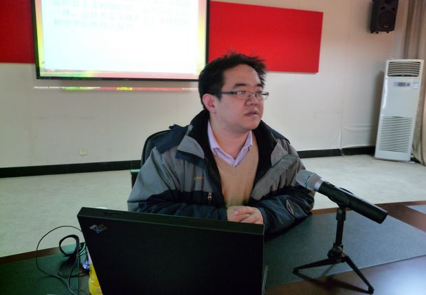 思政教师、机关党支部宣传委员孙云海副教授为机关全体党员解读十八大报告精神。