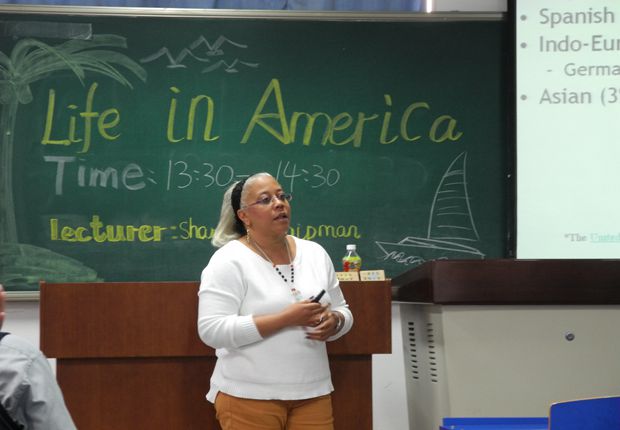 英语专业教研室邀请我院美籍教师Sharon Shipman在教学楼1201室作题为“Life in America”的讲座,外国语a片