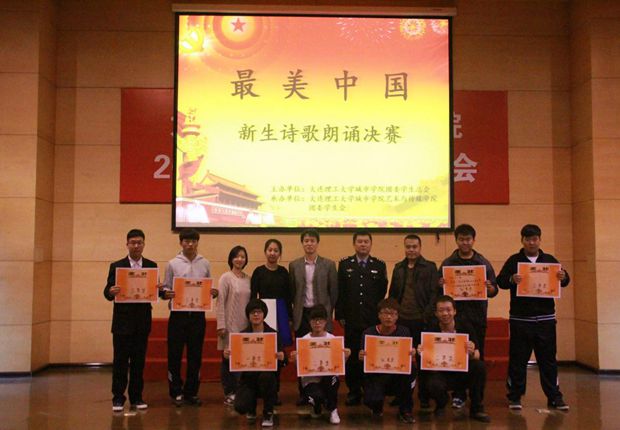 团委承办的“最美中国“新生诗歌朗诵决赛于10月15日中午在图书馆报告厅举行,网络工程1402班摘得比赛桂冠;广播电视新闻学1402班、工程管理1402班获得二等奖;广播电视新闻学1401班、风景园林1401班、电气工程及其自动化1404班获得三等奖;日语1404班、软件工程1403班获得优秀奖。