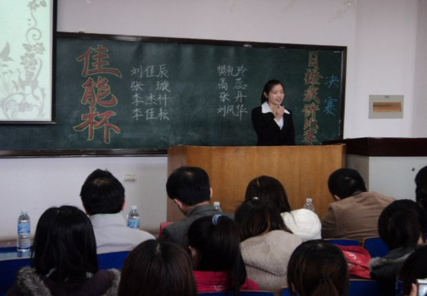选拔赛决赛在教学楼1211教室举行,经过激烈角逐,樊礼玲、刘佳辰脱颖而出,获得参加大连市佳能杯日语比赛的资格。