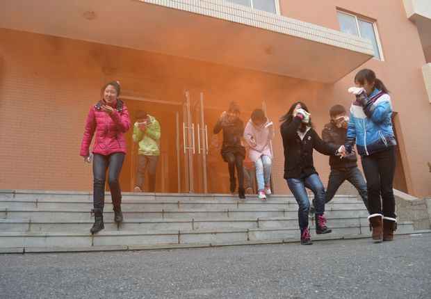 同学们从“火场”逃生