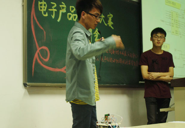 团委承办的第六届电子产品设计大赛答辩会在教学楼1201教室进行。a片